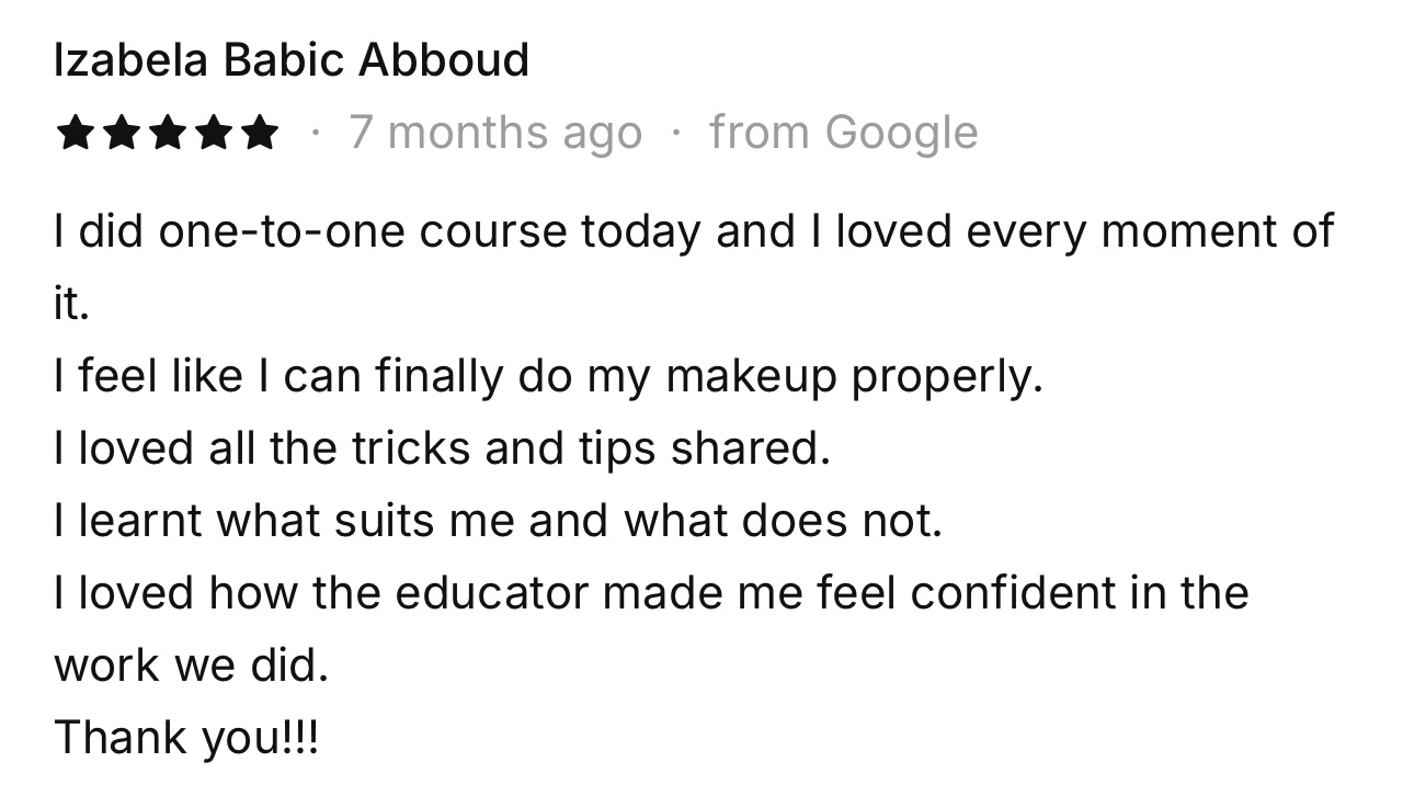 โข Private Self-Makeup Course: You choose the day and time that works best for you.
